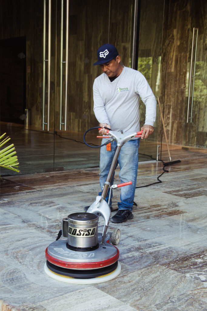 - Pulido de pisos de mármol con discos de diamante